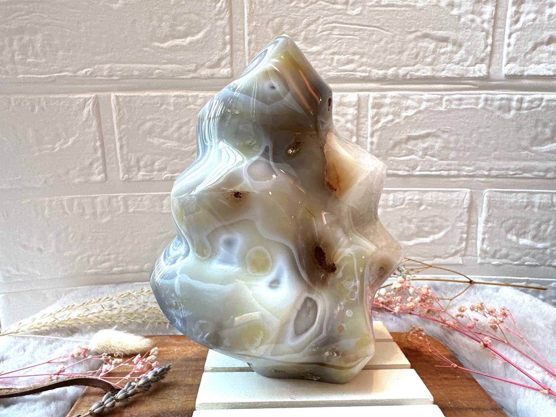 Hand carved stones will not be perfect or symmetrical. Stones in their rough, natural, unpolished state and will include facets and irregularities such as nicks and chips.