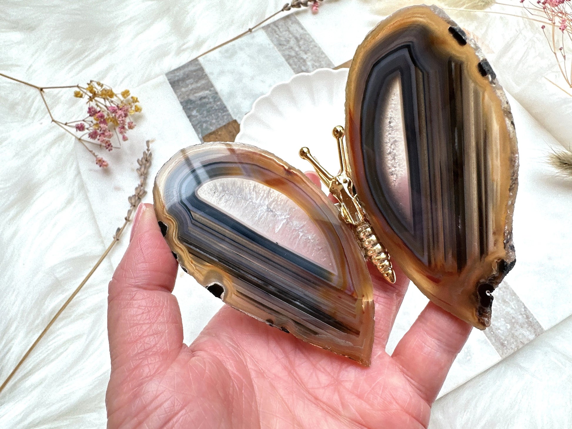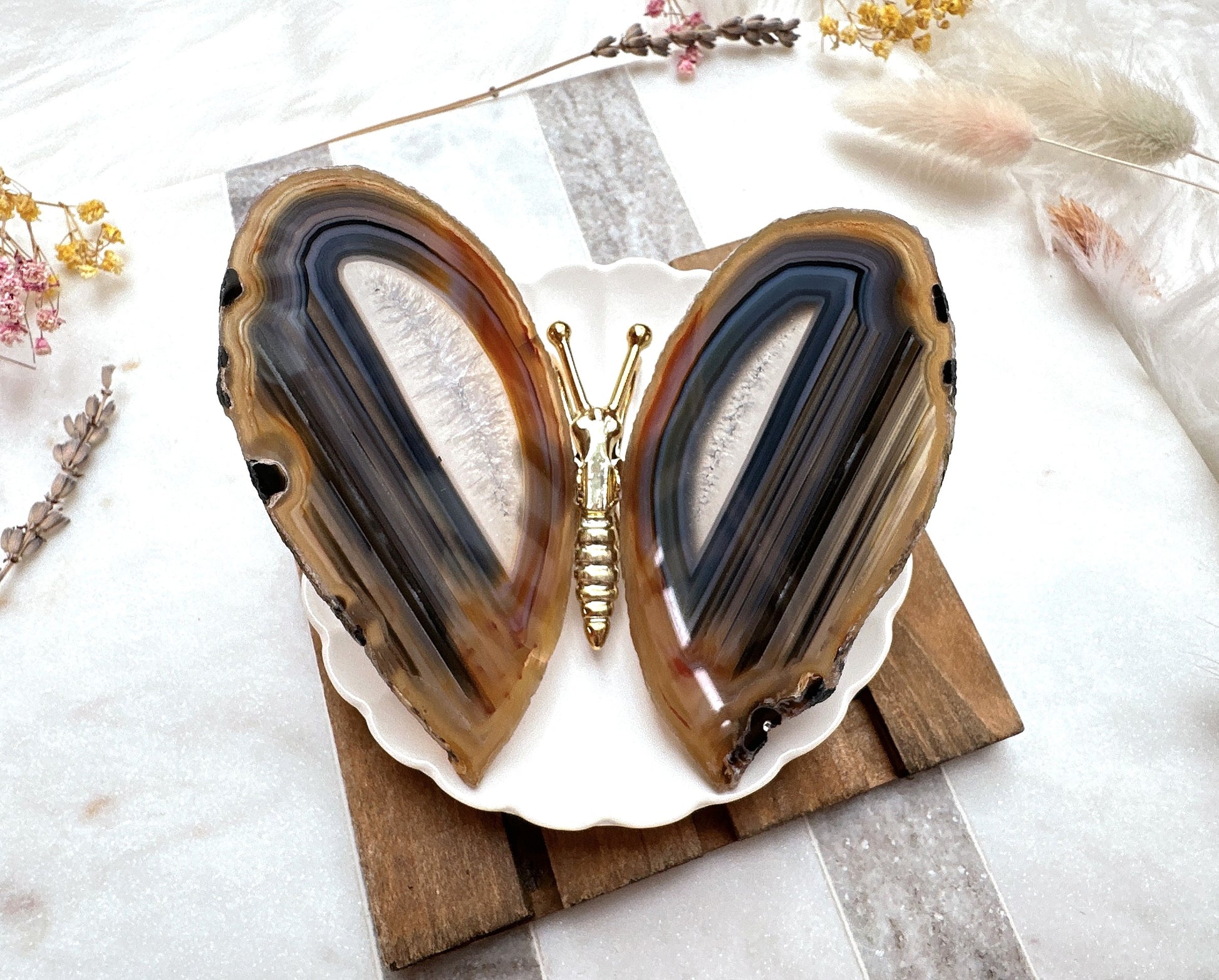 Beautiful agate butterfly with agate slices. This listing is for this exact crystal.