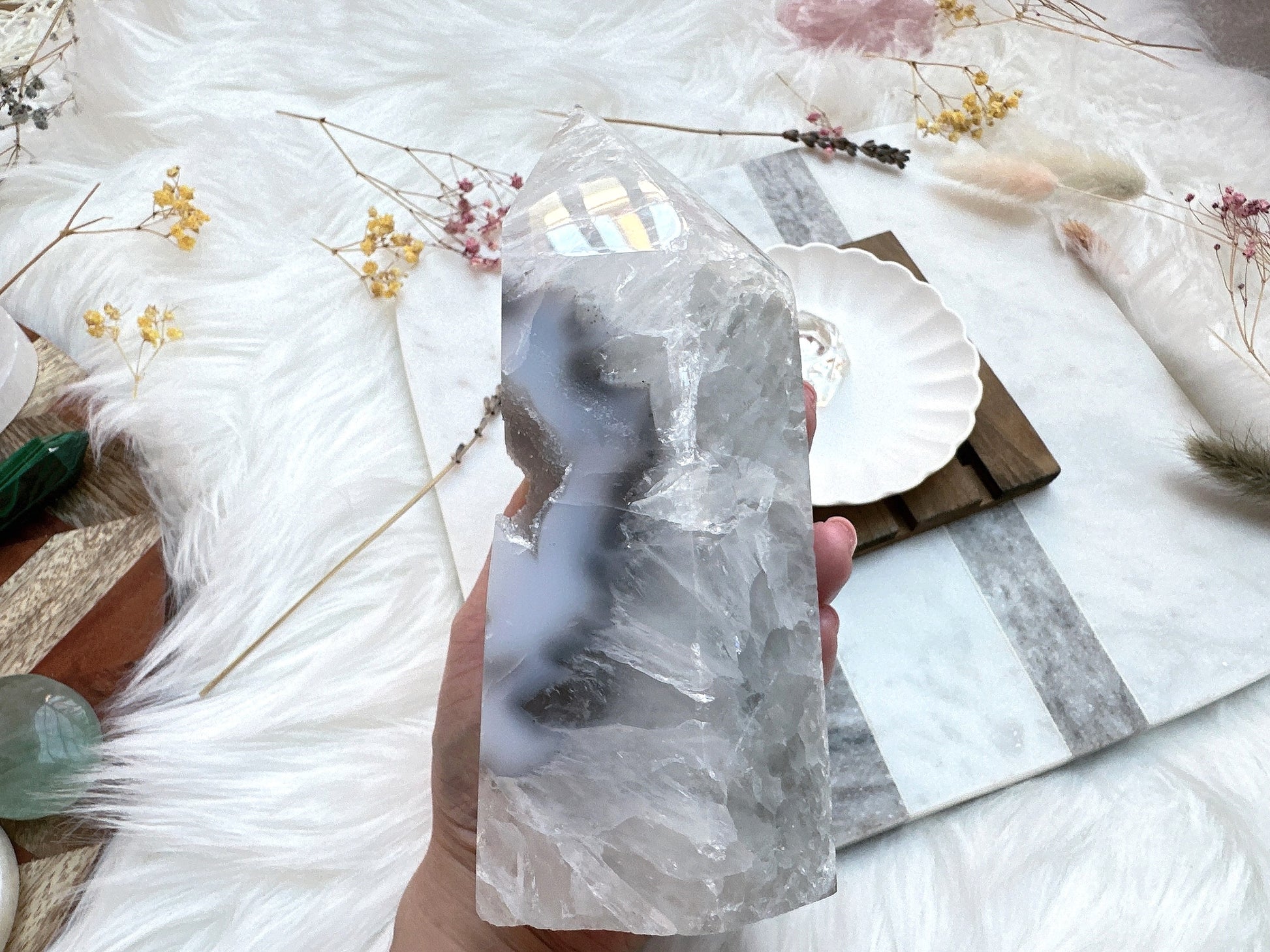 Beautiful agate tower with druzy. This listing is for this exact crystal.
