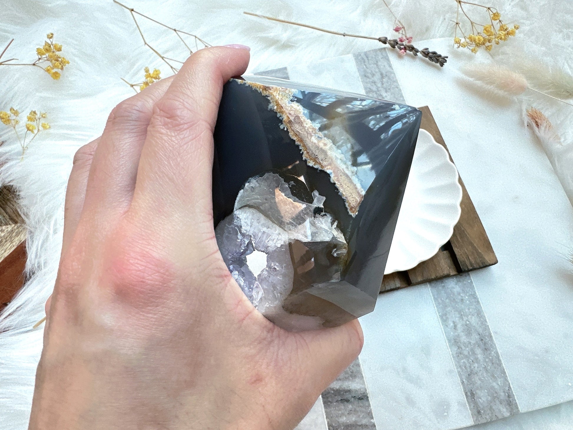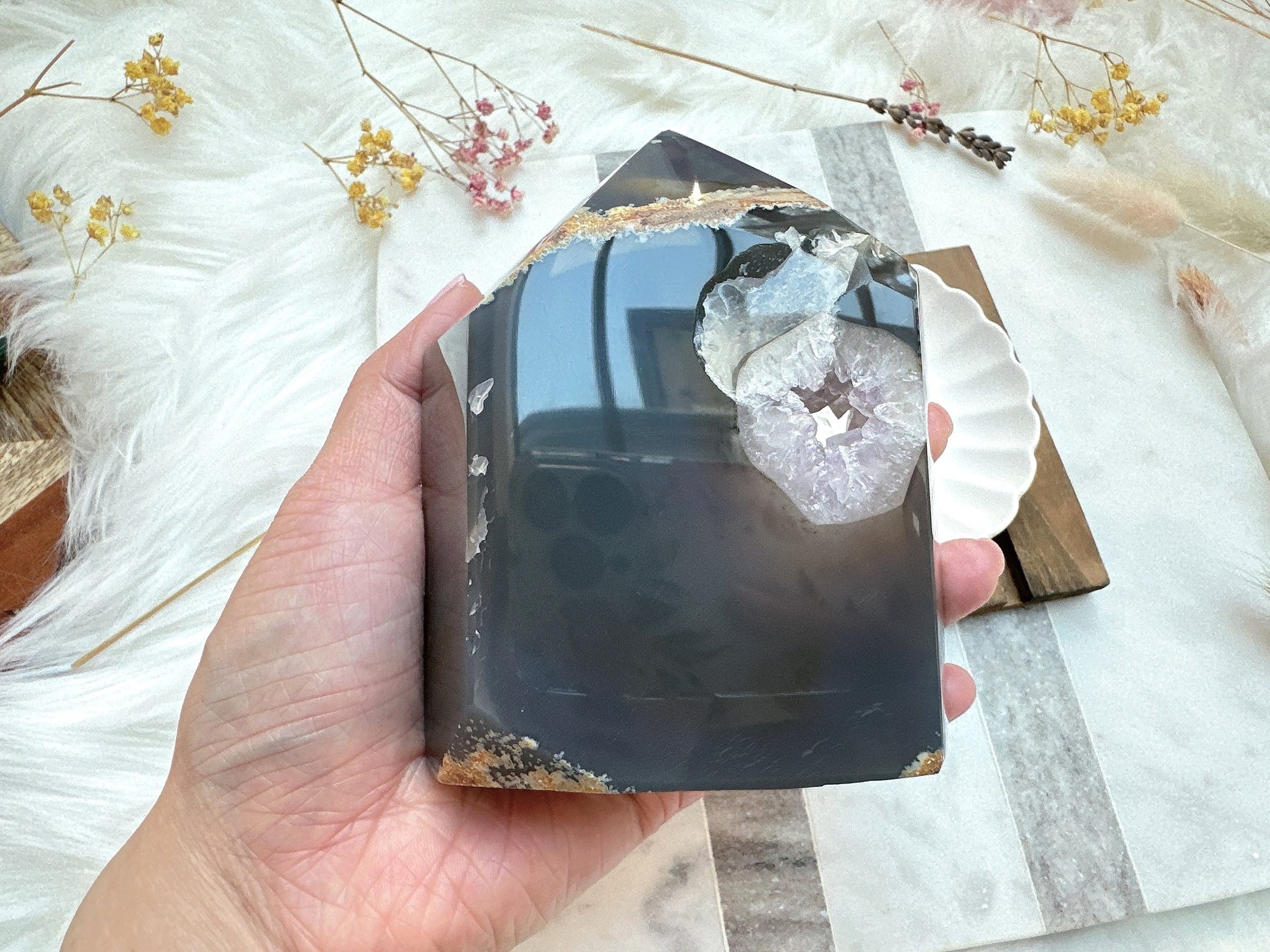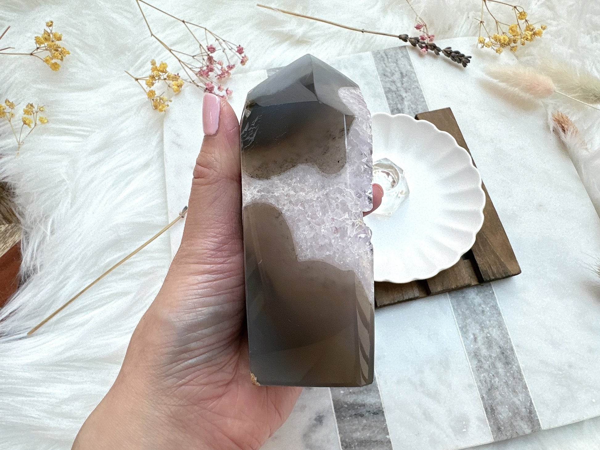 Beautiful agate tower with druzy. This listing is for this exact crystal.