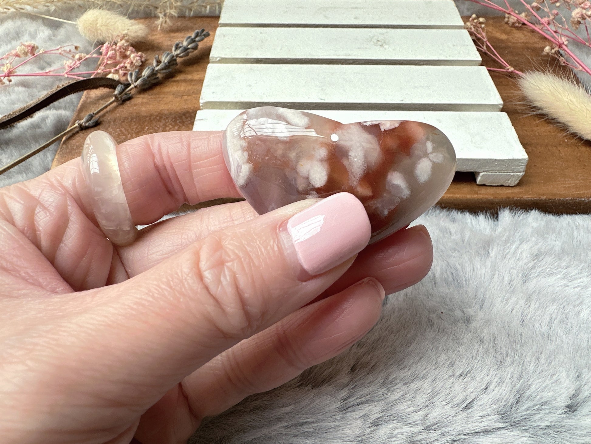 Flower Agate Heart Pendant Bead