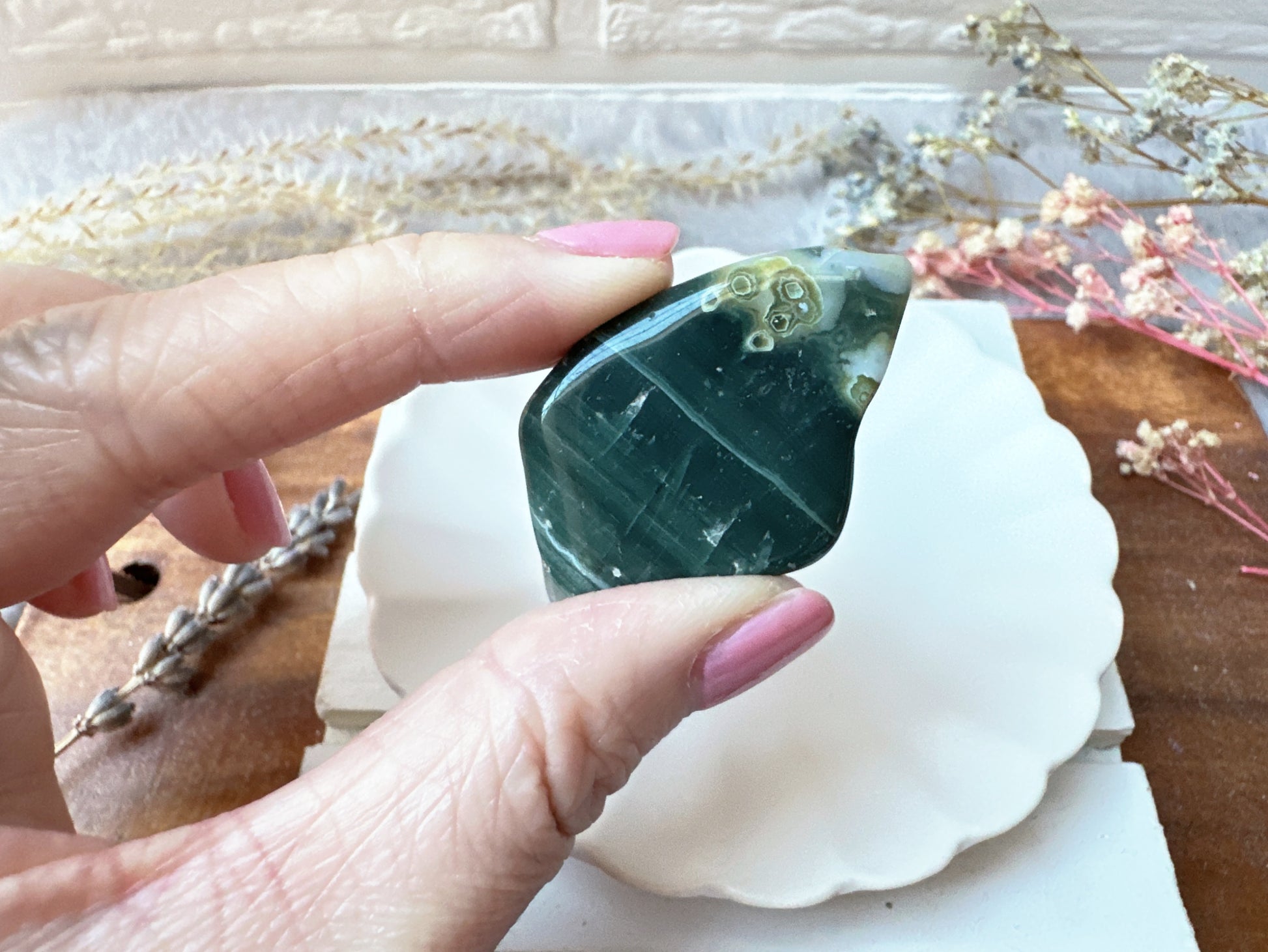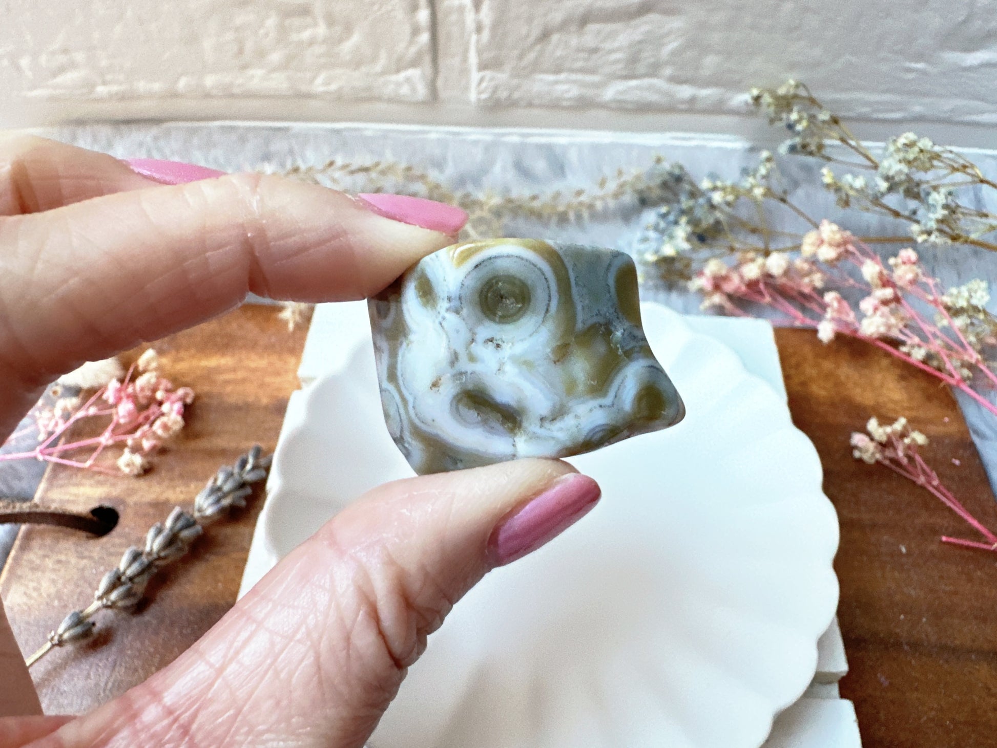 Set of 6 beautiful ocean jasper tumbles. This listing is for this exact set.