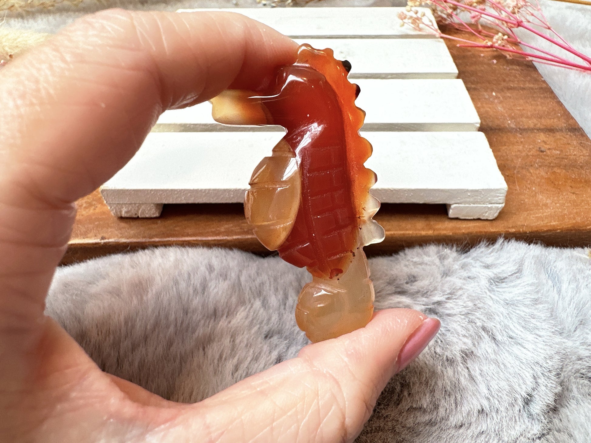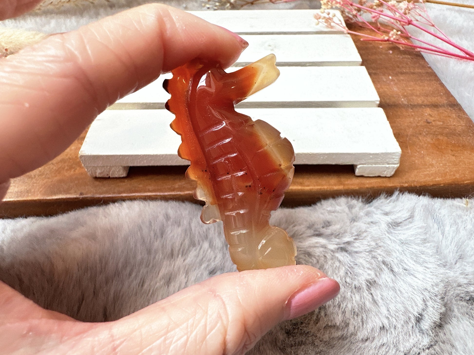 Beautiful small carnelian seahorse. This listing is for this exact crystal.