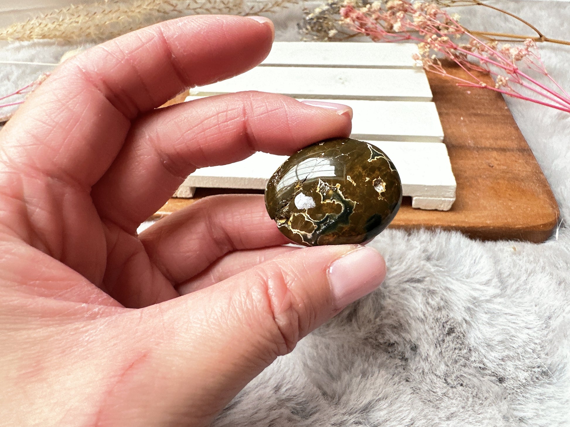 Beautiful small ocean jasper tumble. This listing is for this exact crystal. Please note this tumble is not completely smooth.